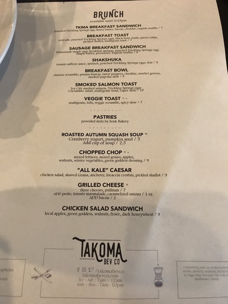 Takoma Bev, located in Takoma Park, MD, is a versatile establishment offering cocktails, coffee, tea, and breakfast/brunch options. The menu features vegan choices and caters to various dietary needs. With a cozy ambiance, Takoma Bev provides indoor and outdoor seating, making it a great spot for different occasions.